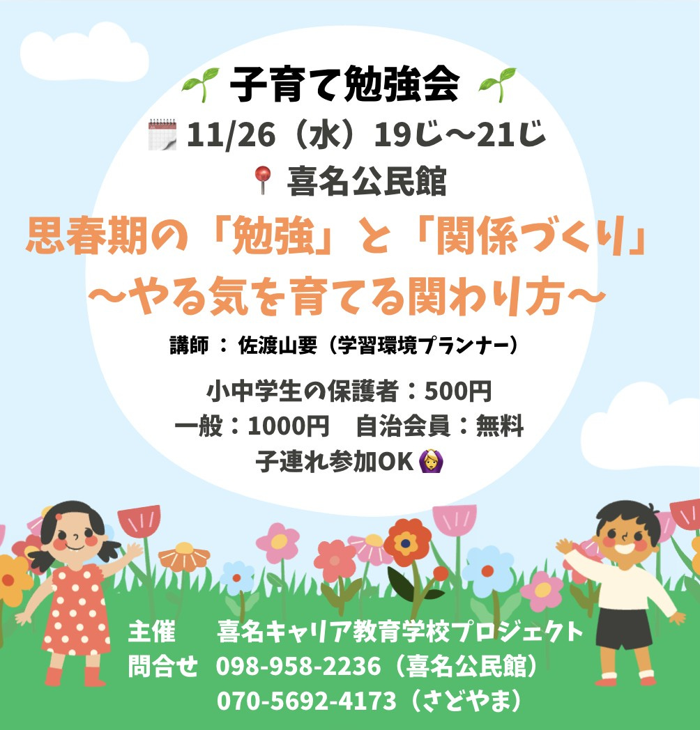 📞 お問い合わせ:098-917-3336 (銘苅小学校PTCA子育て応援部 杉山、新里、小野間)